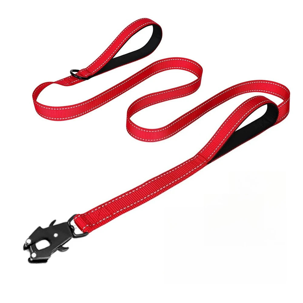 Heavy Duty Dog Leash- Nylon reflective dog leash with Soft Padded 2 Handle & Auto Lock Frog Clip Outdoor dog leash